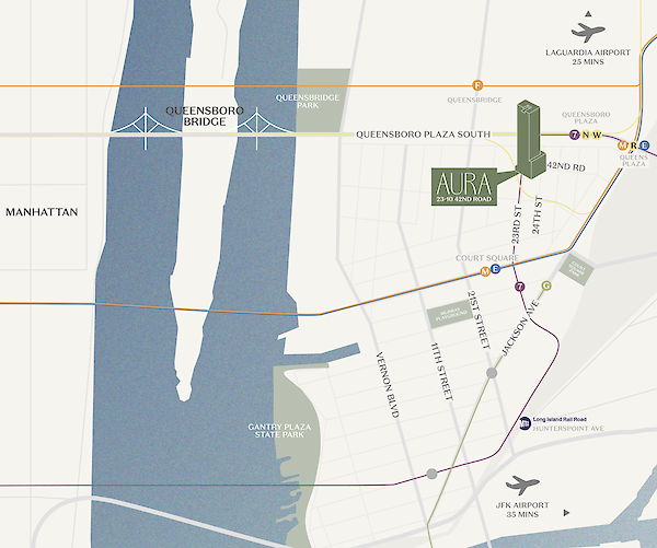 AURA is located just minutes from a vast array of transportation options, offering accessibility and a fast commute to Manhattan and beyond.
